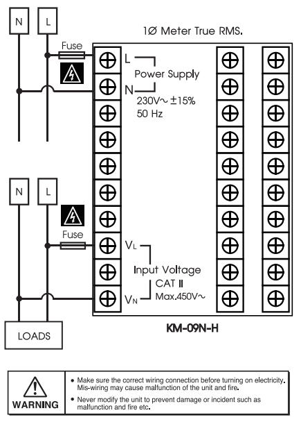 • KM-09N-H is a device that measures that electrical system Hz in 1 phase system