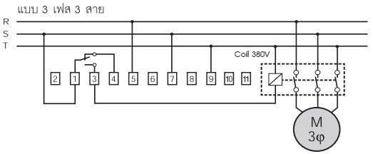 When connecting the PM-019 to the 3-phase power system when the voltage is present normal (no more than UL set and not lower than set LL) . voltage active all phase Relay contact will work to connect the circuit to load. The LED indicates that the relay is working. If the voltage falls or the power is over and the phase is missing. The relay contact will stop working to cut out the circuit and the LED will go off.