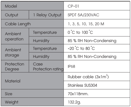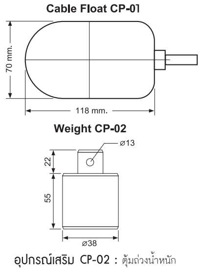 CP-01 is a float switch for water level detection and control for high/low water level as needed. It’s typically used in tanks, round and wastewater treatment facilities. The float switch has mercury switch inside and connect to the power cord. Attach the power cord to the top of the tank. When the water level is higher. The float is horizontal. Then the switch in the OFF position, but if the water level is low, the float will be in the vertical position. Make the switch ON