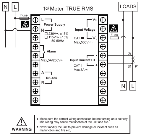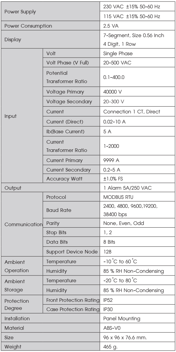 • Can be combined with Current Transformer (CT) up to 10,000 /5A and Potential Transformer Ratio ( PT) 0.1-400.0.