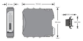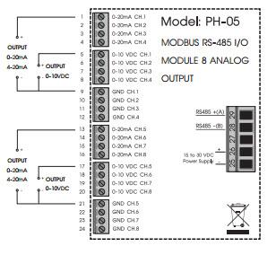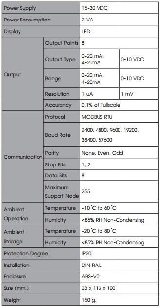 • 8 Analog output 0-20mA / 0-10VDC, 16 Bits, Isolated