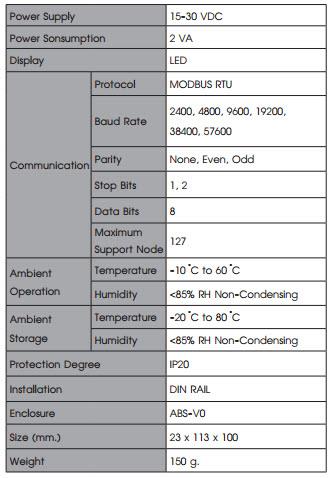 • For RS-485 Modbus RTU Protocol without Modbus Master Device in the system (PC or PLC)