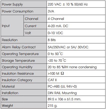 - Read information that is characteristic of electricity 4 – 20 mA or 0 – 10 VDC voltage, convert to 8 – bit digital data with 4 channels
