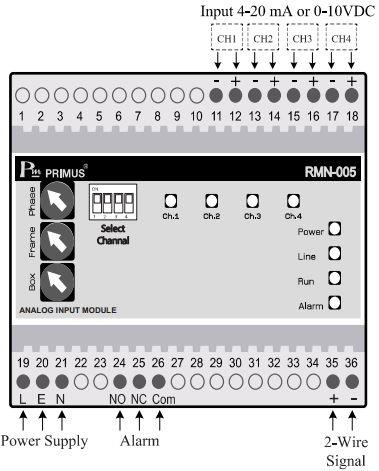 RMN – 005 is a signal reading device 4 – 20 mA. Or 0 – 10VDC, then converted to 8 – bit resolution data and send data to 2communication lines using RMN -006. Analog Output Driver 8- bit resolution can communicate via 2 – wire