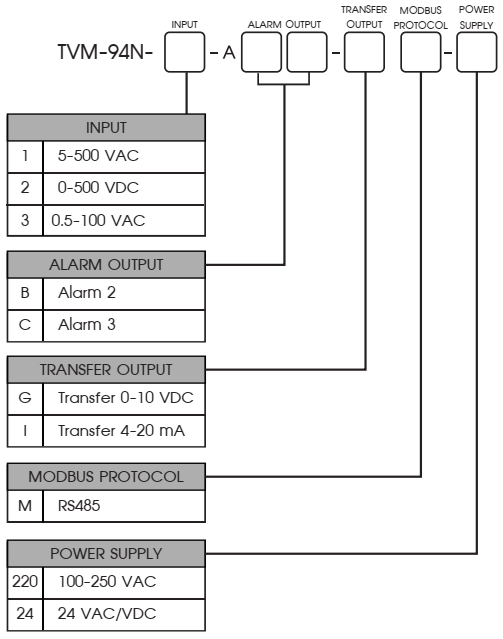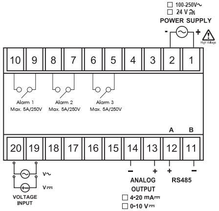 – (AC Voltage 5-500 VAC (DIRECT), 0-20,000 VAC (With PT).